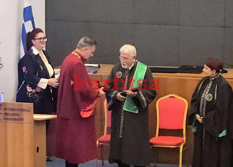 Η τελετή πραγματοποιήθηκε χθες 14 Οκτωβρίου 2025, στο Αμφιθέατρο “Κώστας Θ. Γραμμένος” της Πανεπιστημιούπολης της Θέρμης. Η αναγόρευση του τιμώμενου σε Επίτιμο Διδάκτορα, η περιένδυση και η επίδοση τιμητικής πλακέτας στον Δρ. Γεώργιο Β. Αποστολόπουλο πραγματοποιήθηκε από τον Πρύτανη του Διεθνούς Πανεπιστημίου της Ελλάδος, Καθηγητή Σταμάτη Αγγελόπουλο ο οποίος ανέφερε, μεταξύ άλλων, στην ομιλία του: « Κύριε πρόεδρε, η σημερινή αναγόρευση αποκτά ξεχωριστή σημασία, διότι ο δικός σας αγώνας για την υγειονομική αριστεία και την τεχνολογική καινοτομία βρίσκει άμεση ανταπόκριση στις βασικές αξίες του Διεθνούς Πανεπιστημίου της Ελλάδος. Το ΔΙΠΑΕ, ως ένα από τα μεγαλύτερα πανεπιστήμια της χώρας, έχει ενσωματώσει την καινοτομία στον πυρήνα της αποστολής του. Η έμφαση στην έρευνα αιχμής και η διαρκής αναβάθμιση των προγραμμάτων σπουδών μας αποσκοπούν στη δημιουργία αποφοίτων ικανών να πρωταγωνιστήσουν στο σύγχρονο, απαιτητικό περιβάλλον της υγείας. Οι φοιτητές μας, με γνώση και υψηλή κατάρτιση, αποτελούν τη ζωτική δύναμη που τροφοδοτεί κορυφαίες δομές όπως και ο Όμιλος Ιατρικού Αθηνών. Η επιλογή μας να σας τιμήσουμε αναδεικνύει ακριβώς αυτή τη σύγκλιση στόχων: τη δέσμευση του Πανεπιστημίου στην παραγωγή γνώσης και τη δική σας δέσμευση στην πρακτική εφαρμογή της, με στόχο την αναβάθμιση της ζωής του πολίτη».