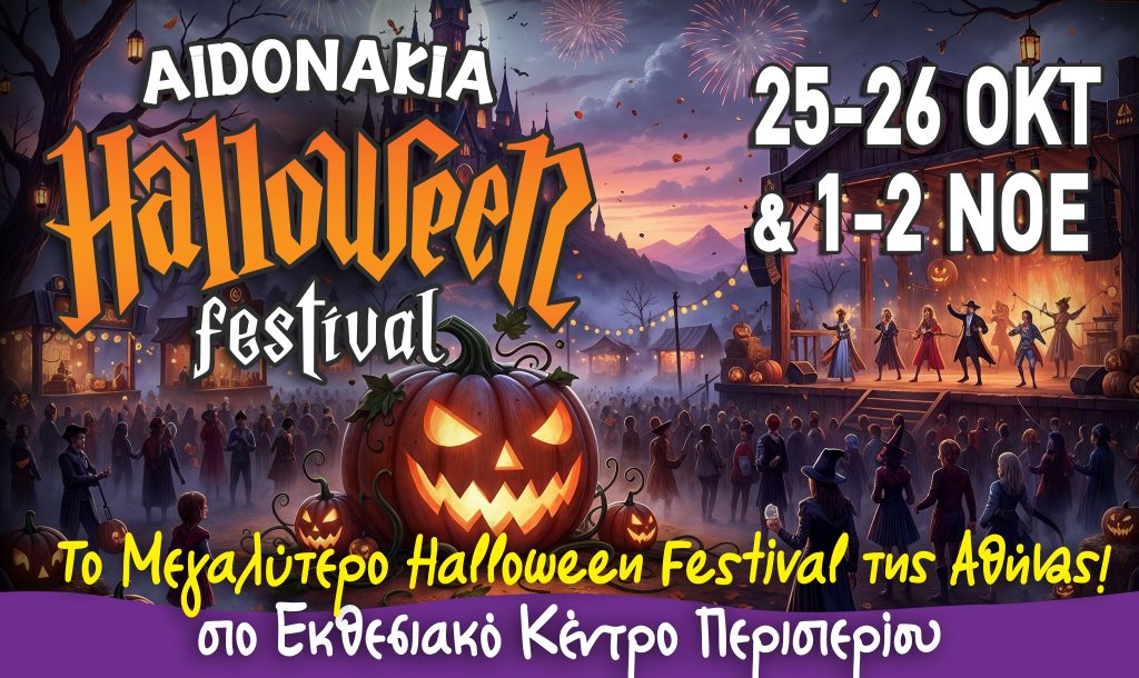 Το μεγαλύτερο Halloween Φεστιβάλ της Ελλάδας… επιστρέφει για δεύτερη χρονιά, πιο φαντασμαγορικό από ποτέ! Το Aidonakia Halloween Festival 2025 ανοίγει τις πύλες του στις 25 & 26 Οκτωβρίου και στις 1 & 2 Νοεμβρίου, στο Εκθεσιακό Κέντρο Περιστερίου, και υπόσχεται μια εμπειρία που κανείς – μικρός ή μεγάλος – δεν πρέπει να χάσει!