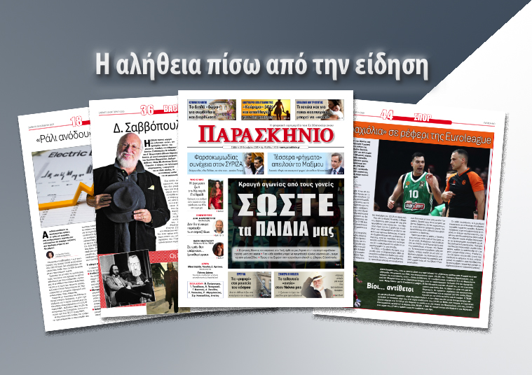 Με μια εγγραφή στο newspaper.paraskhnio.gr η εφημερίδα «ΠΑΡΑΣΚΗΝΙΟ» θα βρίσκεται άμεσα και δωρεάν κάθε Σάββατο πρωί στην οθόνη σας!