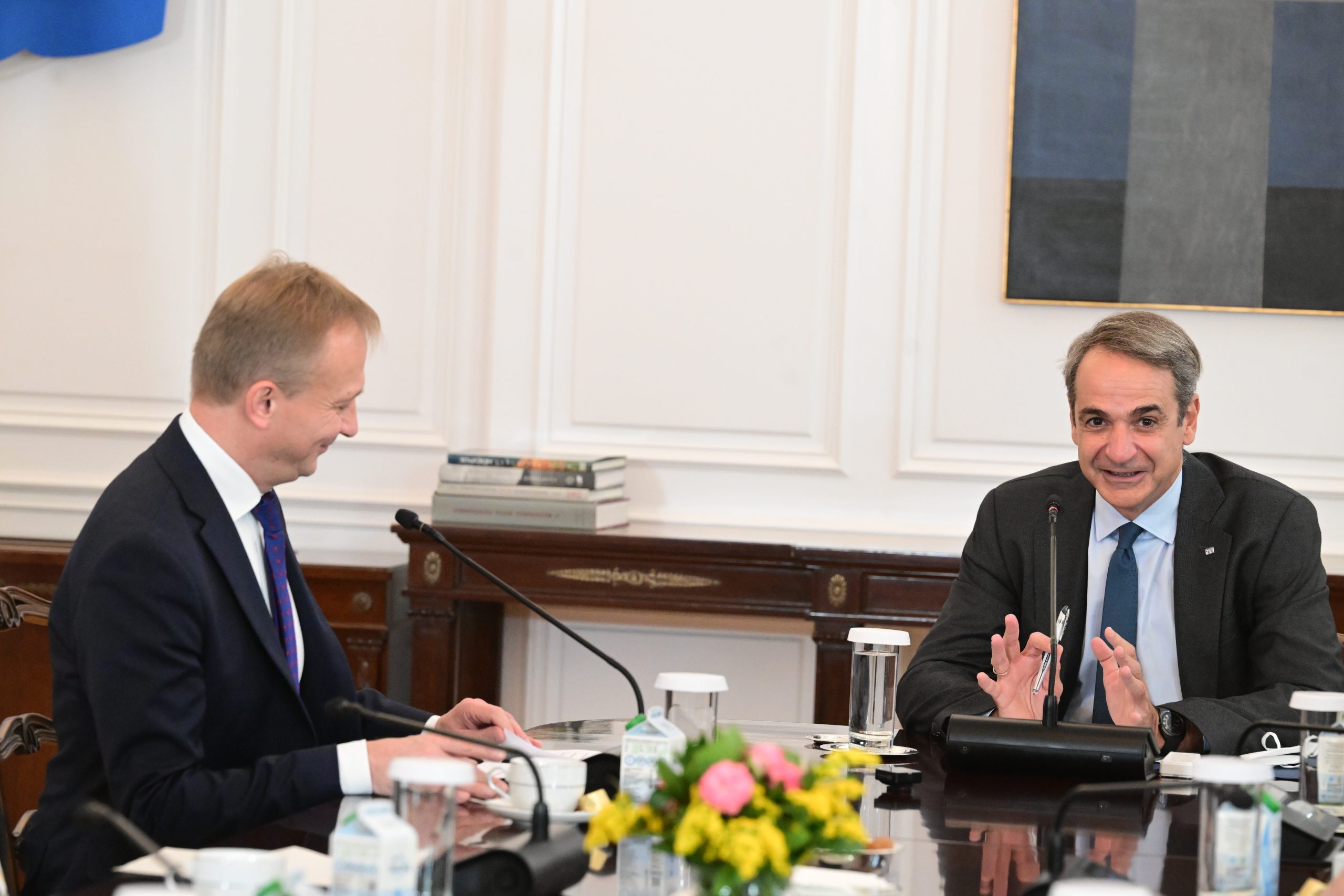 «Χαιρόμαστε ιδιαίτερα που σας υποδεχόμαστε στην Ελλάδα. Είναι επίσης μια ευκαιρία για εσάς να συζητήσετε με το οικονομικό μας επιτελείο και να δείτε, πιστεύω, την πρόοδο που έχει σημειώσει η οικονομία μας τα τελευταία χρόνια. Ασφαλώς, είναι επίσης μια ευκαιρία να συζητήσουμε το πιο «καυτό» θέμα του επόμενου έτους, που δεν είναι άλλο από το νέο Πολυετές Δημοσιονομικό Πλαίσιο. Θα είναι μια ευκαιρία για εμάς να παρουσιάσουμε τις θέσεις μας, οι οποίες, είμαι βέβαιος, είναι αρκετά γνωστές» ανέφερε ο κ. Μητσοτάκης.