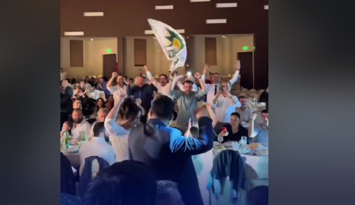 Και όχι δεν ακούστηκε μόνο ο ύμνος του ΠΑΣΟΚ αλλά η υποδοχή του ζευγαριού στο κέντρο θα μπορούσε να θυμίζει υποδοχή του αρχηγού του κόμματος, καθώς φίλοι και συγγενείς εκτός ότι χειροκροτούσαν το ζευγάρι τραγουδούσαν τον ύμνο, είχαν υψώσει γροθιές αλλά εμφανίστηκαν στην αίθουσα και σημαίες του κόμματος!
