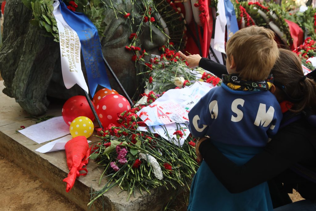 Ισχυρό «παρών» έχουν δώσει από το πρωί πολλά σχολεία της Αθήνας, αλλά και των γύρω περιοχών και της περιφέρειας. «Ήδη από την προηγούμενη εβδομάδα μιλήσαμε στα παιδιά με απλό τρόπο για το τι είναι η Δημοκρατία, τι η Δικτατορία. Κάναμε και τη γιορτή μας σήμερα και ήρθαμε εδώ, στο Πολυτεχνείο», ανέφερε νηπιαγωγός από το γειτονικό 82ο νηπιαγωγείο. «Προσπαθήσαμε και εμείς από τη μεριά μας να εντρυφήσουμε στα παιδιά πόσο σημαντική είναι η Ελευθερία και η πράξη εκείνη των φοιτητών, που οδήγησε στην πτώση της Χούντας», είπε και πρόσθεσε ότι «το Πολυτεχνείο δεν έχει τελειώσει, ακόμα διεκδικούμε να έχουμε δασκάλους στα σχολεία, δικαιοσύνη…».