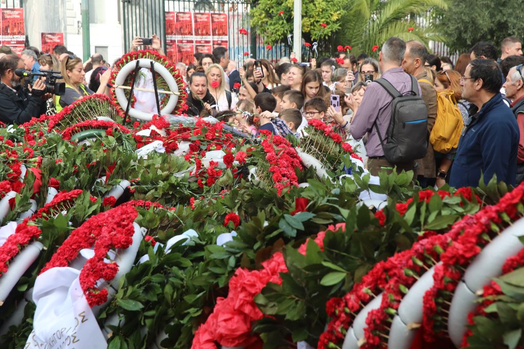 Μέχρι το μεσημέρι, στεφάνι είχαν καταθέσει εκπρόσωποι κομμάτων, φορέων και συλλόγων, μεταξύ των οποίων ο πρόεδρος του ΣΥΡΙΖΑ, Σωκράτης Φάμελλος και η πρόεδρος της Πλεύσης Ελευθερίας, Ζωή Κωνσταντοπούλου, η ΑΔΕΔΥ, η ΠΟΕ-ΟΤΑ και η ΔΟΕ.