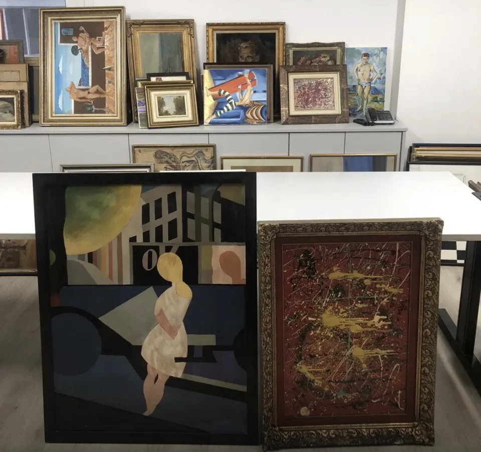 Σύμφωνα με γνωμάτευση πραγματογνώμονα, προέκυψε ότι στην πλειονότητά τους οι πίνακες ζωγραφικής είναι πλαστοί. Μάλιστα, μεταξύ αυτών, εντοπίστηκαν και πλαστά έργα γνωστού Έλληνα ζωγράφου, του οποίου τα αντίστοιχα γνήσια έργα έχουν χαρακτηριστεί ως μνημεία νεότερης πολιτιστικής κληρονομιάς.