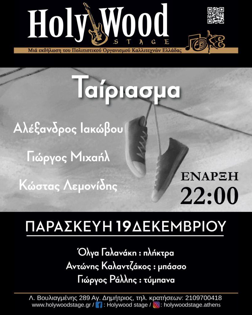 Είναι ο Κώστας Λεμονίδης (κιθάρα), ο Αλέξανδρος Ιακώβου (βιολί) και ο Γιώργος Μιχαήλ (φωνή), οι οποίοι σε προσκαλούν την Παρασκευή 19 Δεκεμβρίου στο HolyWood Stage, σε μία παράσταση που επιχειρεί να ταιριάξει τους Deep Purple με τον Κώστα Τουρνά, τον Stevie Wonder με τον Μιχάλη Ρακιντζή, τον Λουκιανό Κηλαηδόνη με τον John Denver, καθώς επίσης το Last Christmas με το ελληνικό Πάσχα.