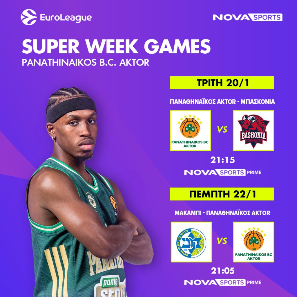 Η 7η «Διαβολοβδομάδα» της EuroLeague, της κορυφαίας ευρωπαϊκής διασυλλογικής διοργάνωσης στο χώρο του μπάσκετ είναι εδώ και ετοιμάζεται να προσφέρει μεγάλες συγκινήσεις στο παρκέ του Novasports!
