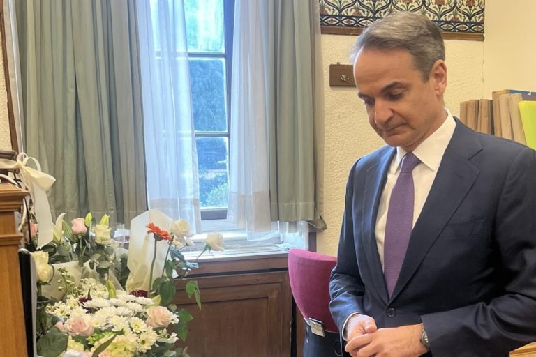 Ένα λουλούδι στο γραφείο της δημοσιογράφου Αντιγόνης Πανέλλη που έφυγε την Πέμπτη από τη ζωή στα 57 της χρόνια, άφησε ο πρωθυπουργός Κυριάκος Μητσοτάκης, το πρωί της Παρασκευής.