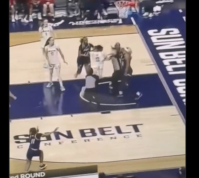 Η αναμέτρηση ανάμεσα στην Κόσταλ Καρολάινα και τη Σάουθ Αλαμπάμα, υπό κανονικές συνθήκες, δεν θα είχε τραβήξει τα φώτα της δημοσιότητας. Όμως τα τελευταία έξι λεπτά άλλαξαν τα πάντα. Με το σκορ στο 80–70, οι παίκτριες άρχισαν να λογομαχούν έντονα, με τους διαιτητές να προσπαθούν να επιβάλουν την τάξη.