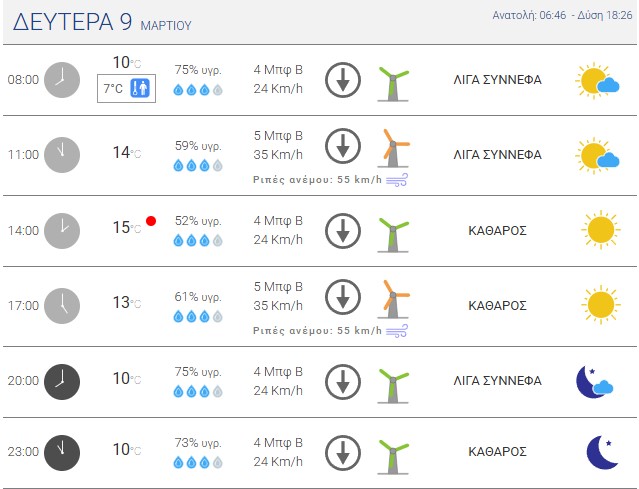 Οι άνεμοι θα πνέουν στα δυτικά από ανατολικές διευθύνσεις και στα ανατολικά από βόρειες 4 με 6 και τοπικά στο Αιγαίο 7 μποφόρ. Στο Βόρειο Αιγαίο, θα φτάσουν έως και τα 8 μποφόρ.
