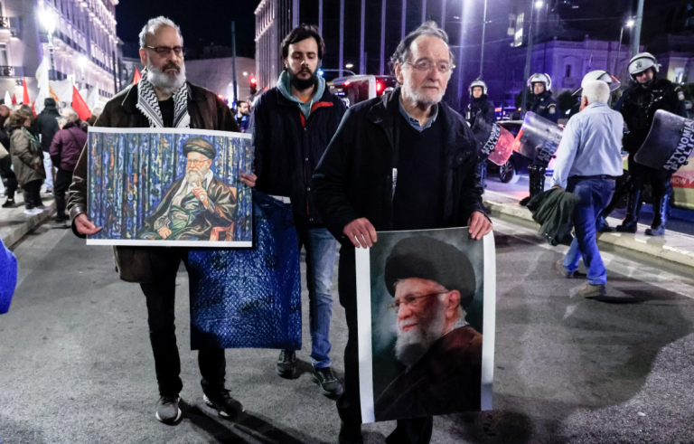 Ο πρώην υπουργός της κυβέρνησης ΣΥΡΙΖΑ-ΑΝΕΛ και επικεφαλής πολιτικού φορέα σήμερα, Παναγιώτης Λαφαζάνης, εμφανίστηκε σε διαδήλωση για τον Ιράν κρατώντας μία τεράστια φωτογραφία του πρώην ανώτατου θρησκευτικού ηγέτη του, Αλί Χαμενεΐ.