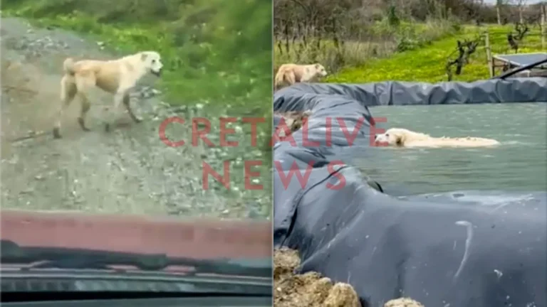 Σύμφωνα με πληροφορίες από τo cretalive.gr, το ζώο διένυσε απόσταση περίπου ενός χιλιομέτρου αναζητώντας βοήθεια, καθώς το κουτάβι της είχε πέσει σε λιμνοδεξαμενή και κινδύνευε άμεσα να πνιγεί.