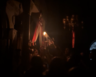 όπως αναφέρει άρθρο του evima.gr τη στιγμή που ο ιερέας εξήλθε από το ιερό για να μεταδώσει το Άγιο Φως στο εκκλησίασμα, η έντονη κινητικότητα των πιστών που προσέγγισαν γρήγορα το σημείο είχε ως αποτέλεσμα το κερί που κρατούσε να σβήσει.