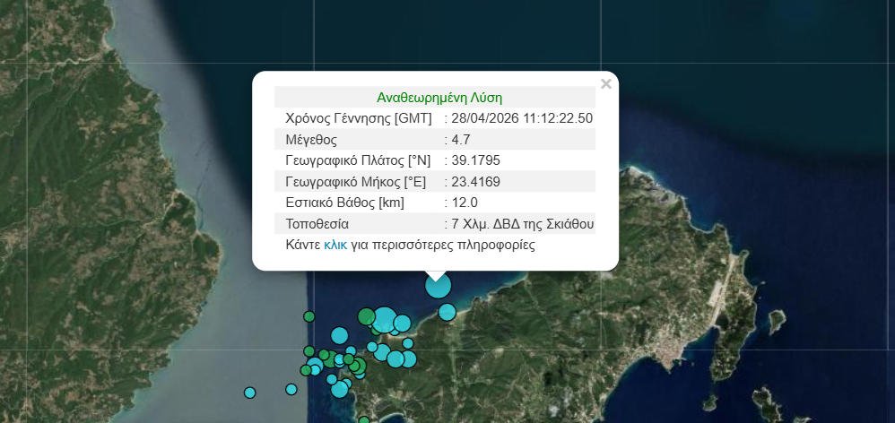 Μεγάλη αναστάτωση έχει προκαλέσει η έντονη σεισμική δραστηριότητα στη Σκιάθο, η οποία βρίσκεται σε εξέλιξη από το μεσημέρι της Τρίτης (28/4), με τη μεγαλύτερη δόνηση να φτάνει τα 4,9 Ρίχτερ.