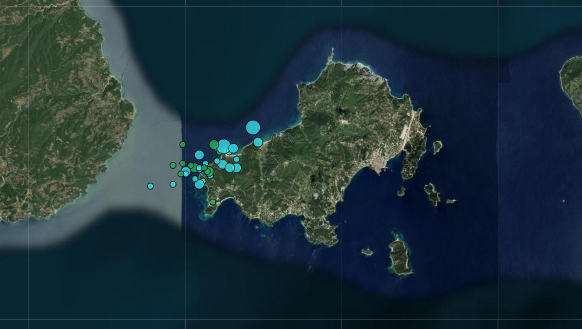 Η πρώτη δόνηση σημειώθηκε στις 14:12 και είχε μέγεθος 4,7 Ρίχτερ, με επίκεντρο θαλάσσια περιοχή στα βορειοδυτικά του νησιού και εστιακό βάθος περίπου 13 χιλιομέτρων, σύμφωνα με τα στοιχεία του Γεωδυναμικού Ινστιτούτου.